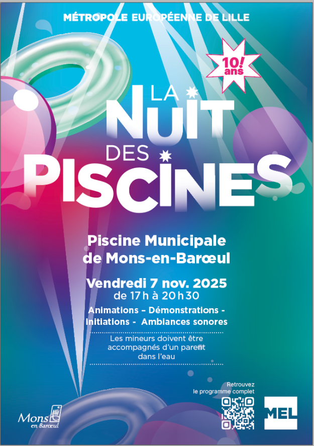 Rénovée et agrandie en 2013, la piscine de Mons en Baroeul compte aujourd’hui deux bassins – un petit pour les aquasports, un grand pour l’apprentissage et la nage libre – un toboggan et un solarium.