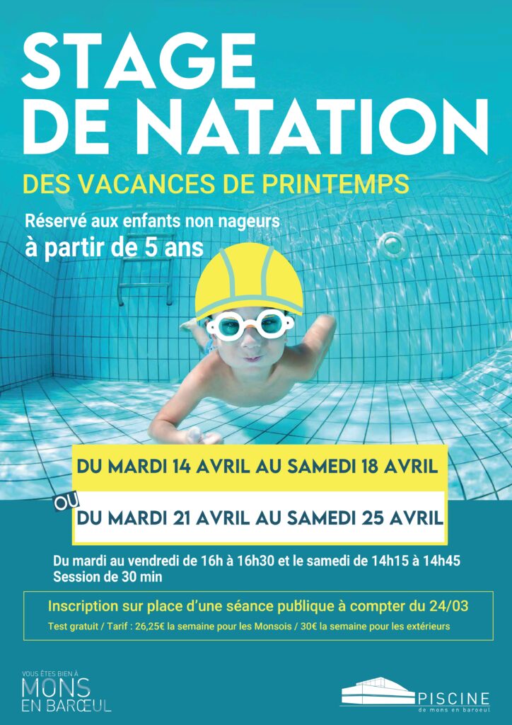 Le mini-stage est destiné à l’apprentissage de la natation, il a lieu cet été, votre enfant viendra pendant une semaine du mardi au vendredi de 16h00 à 16h30 le samedi de 14h15 à 14h45.