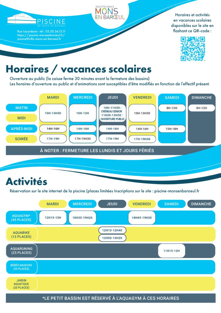 - Port du bonnet de bain obligatoire à partir de 4 ans ( distributeur acceptant espèce et CB au sein de la piscine si besoin)